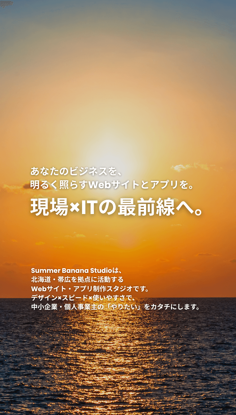 Summer Banana Studioでは、見た目だけでなく“伝える力”を重視。 写真・文章・色・余白のすべてを調整し、あなたの会社やサービスの魅力が伝わるデザインに仕上げます。